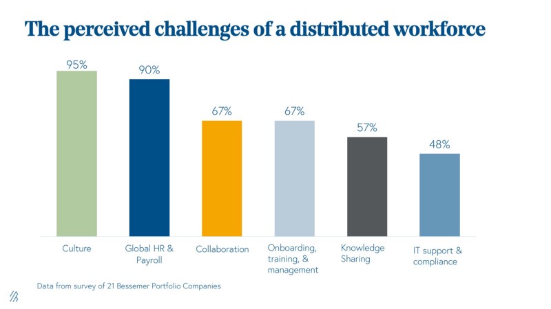 Despite the economic advantages and employee benefits companies get from building distributed teams, many companies still shy away from transitioning to this model. To better understand what’s preventing entrepreneurs from encouraging and hiring for remote work, we surveyed a swath of Bessemer portfolio companies to understand their perceived fears and challenges.